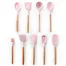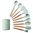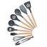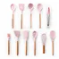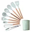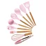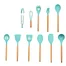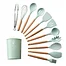 Silicone Utensil Set is Kitchen helper, perfect for all types of foods and cooking&kitchen accessaries, stir fry, stirring cream, butter, ice cream, etc. Include spatula ,basting brush ,pointed spatula ,round-edge turner, ladle, straight-edge turner, Spoon, tongs, pasta fork and perfect for all types of foods and cooking.